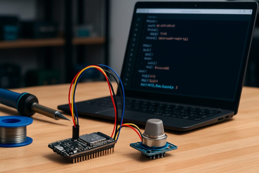 - Assemble and Flash: Wire up the sensor to your ESP32 as shown and upload the YAML code above (you can use a temporary value for `r0_clean_air_factor`, like `10.0`, to start).