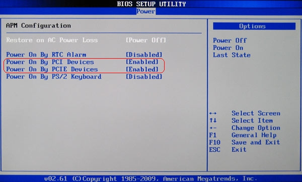 Busca una opción llamada Power on by PCI-E/PCI, Wake on LAN o Remote Wake Up y asegúrate de que esté Enabled (Activada). Guarda los cambios y sal de la BIOS/UEFI. Tu PC se reiniciará.