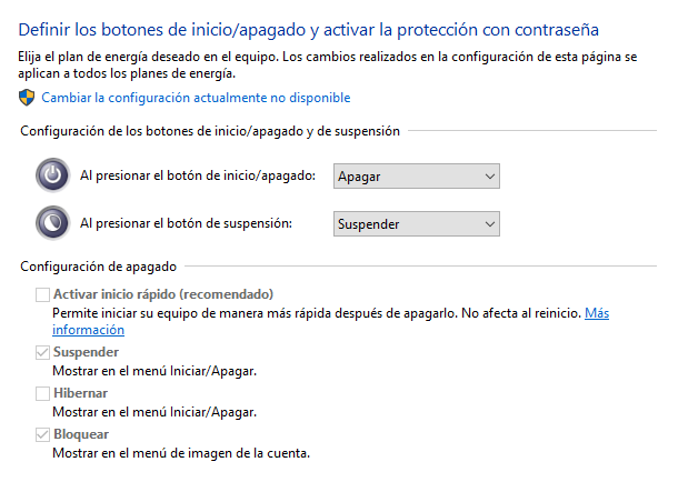 El «Inicio Rápido» de Windows es una función que, en lugar de apagar completamente el equipo, lo pone en un estado de hibernación profunda. Esto impide que la tecnología Wake on LAN funcione correctamente. Para desactivarlo: