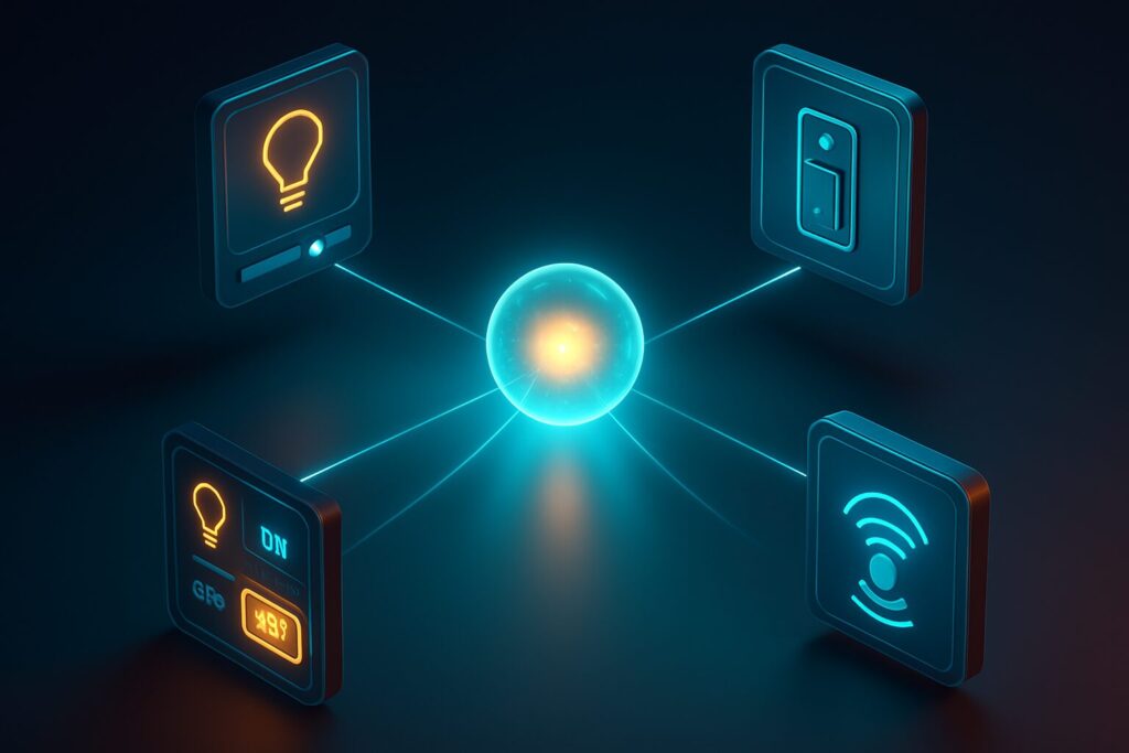 • Problema: Tienes 4 bombillas en el techo, 2 en una lámpara de pie y una tira LED detrás de la TV. Controlarlas individualmente es un engorro.