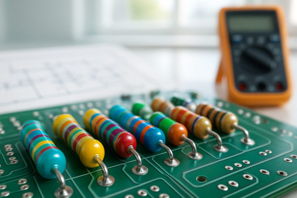 - Resistores de Película Metálica: Ofrecen mayor precisión y estabilidad, ideales para circuitos sensibles.